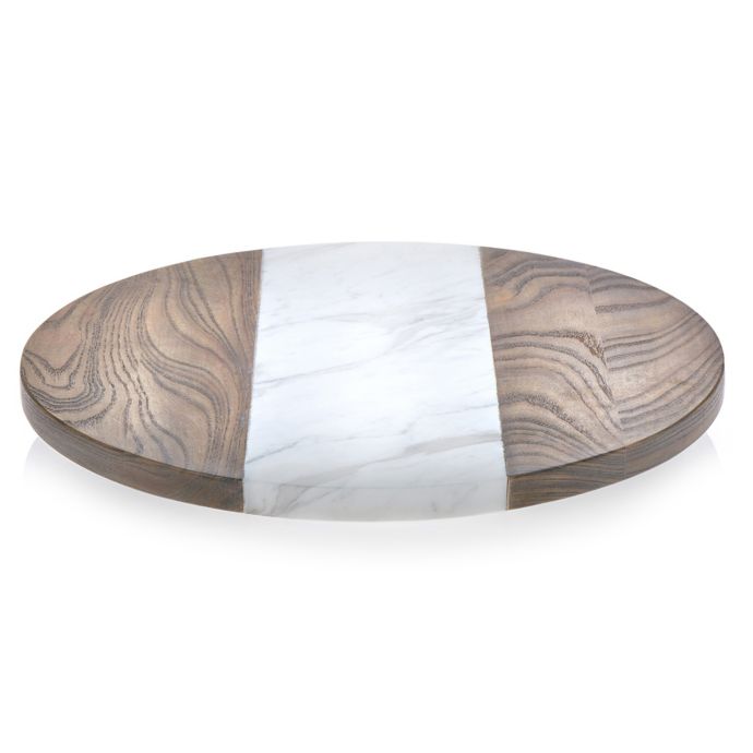 Libbey glass prologue 15 inch wood and marble lazy susan.