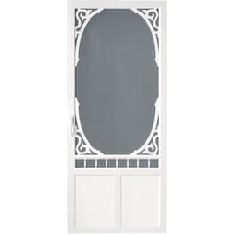 Along with a decorative embossed lower panel this storm door offers low maintenance and durability.