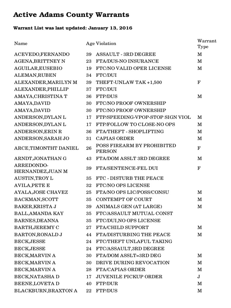 Adams county bench warrants.